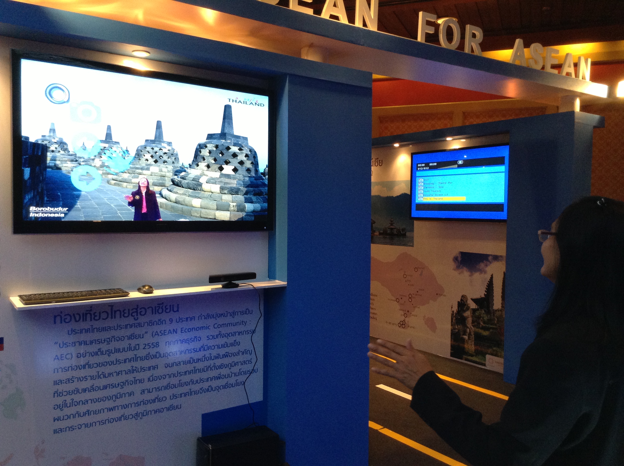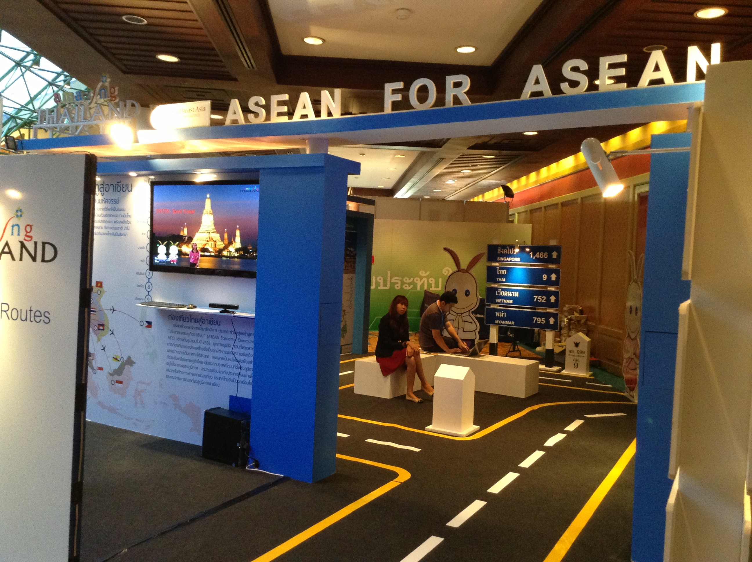2) This year, ASEAN was the winner. For the first time, the Tourism Authority of Thailand, although it is an inbound tourism marketing agency, had a booth under the “ASEAN for ASEAN” banner. All its promotional material, including audio-visuals and creative signage designed as Asian Highway indicators, pointed to ASEAN destinations (see pictures below). Special screens were set up such that visitors could pose against the backdrop of ASEAN tourism icons and email the e-pictures to themselves. Hundreds of e-pictures were taken during the four-day event, generating huge amounts of publicity for the ASEAN destinations at virtually no cost.