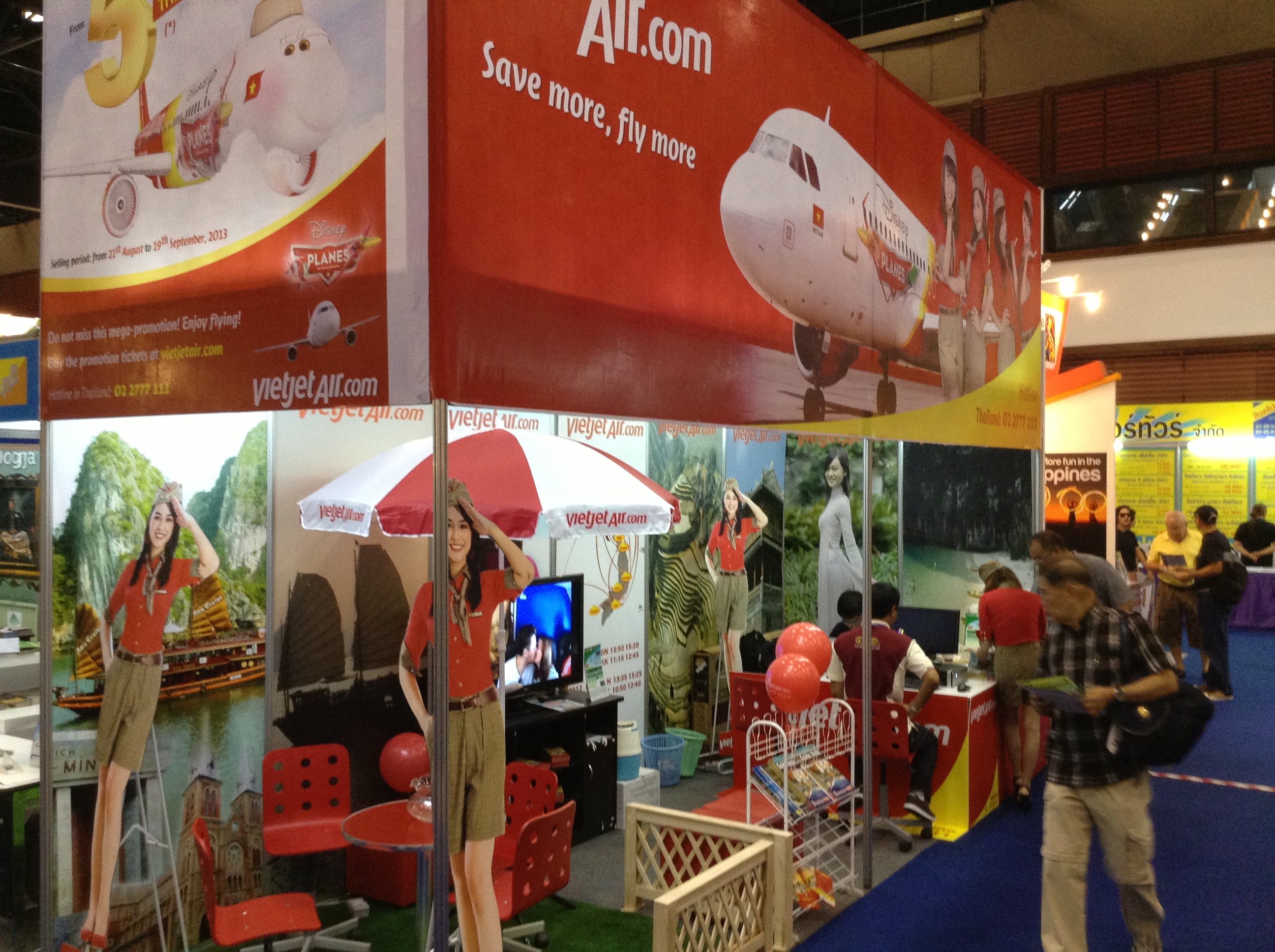 6) Except for Qatar Airways, none of the major airlines were present. Instead, new airlines such as VietJet and Asia Atlantic Airlines took up space, also offering deals. VietJet’s presence means more travel to Vietnam. Low-cost airlines such as NokAir and AirAsia were out in strength, complete with reservation systems installed and discount deals in place for early bookings. Long queues were seen on the consumer days, even in the initial hours of the show opening.