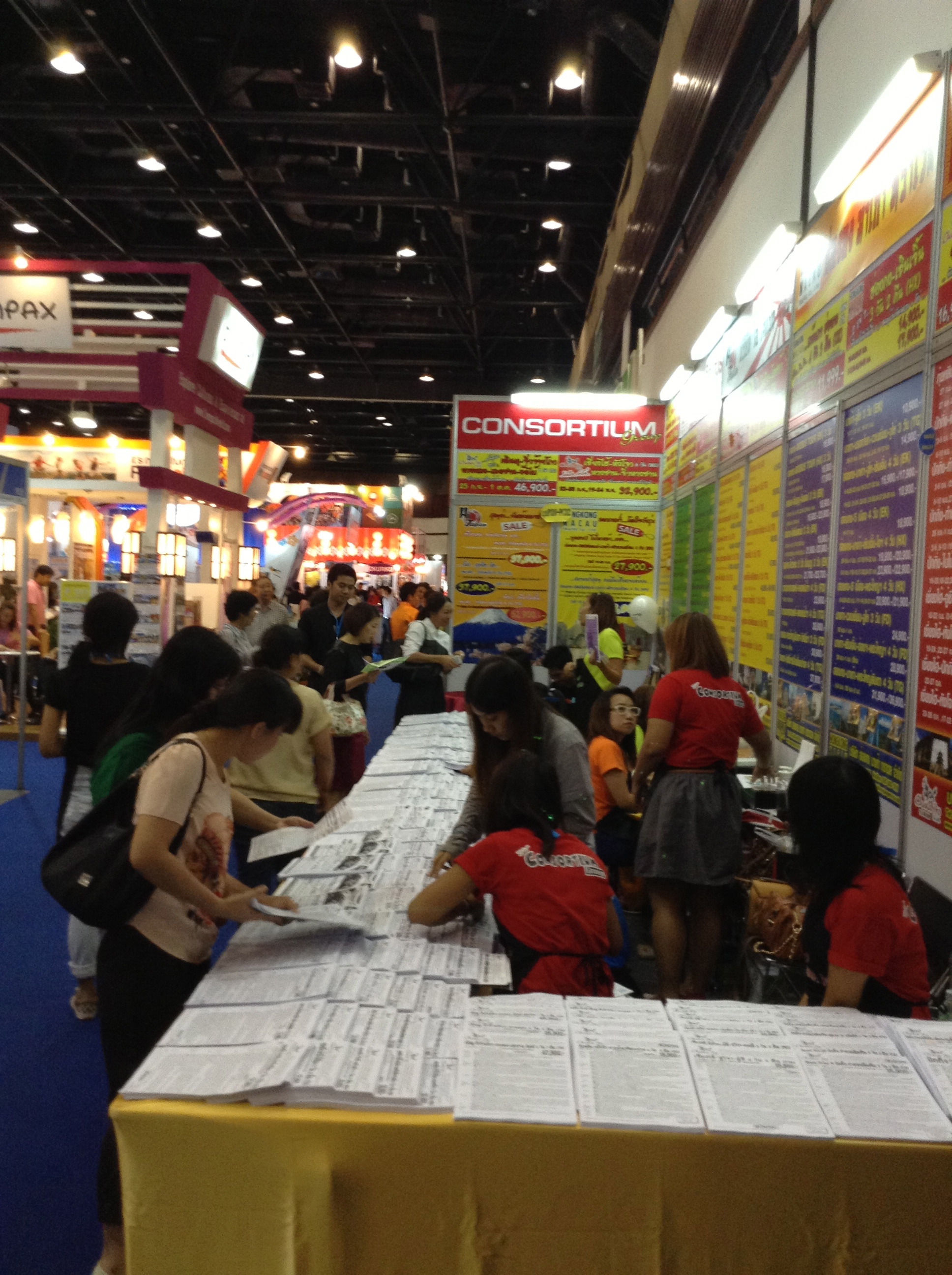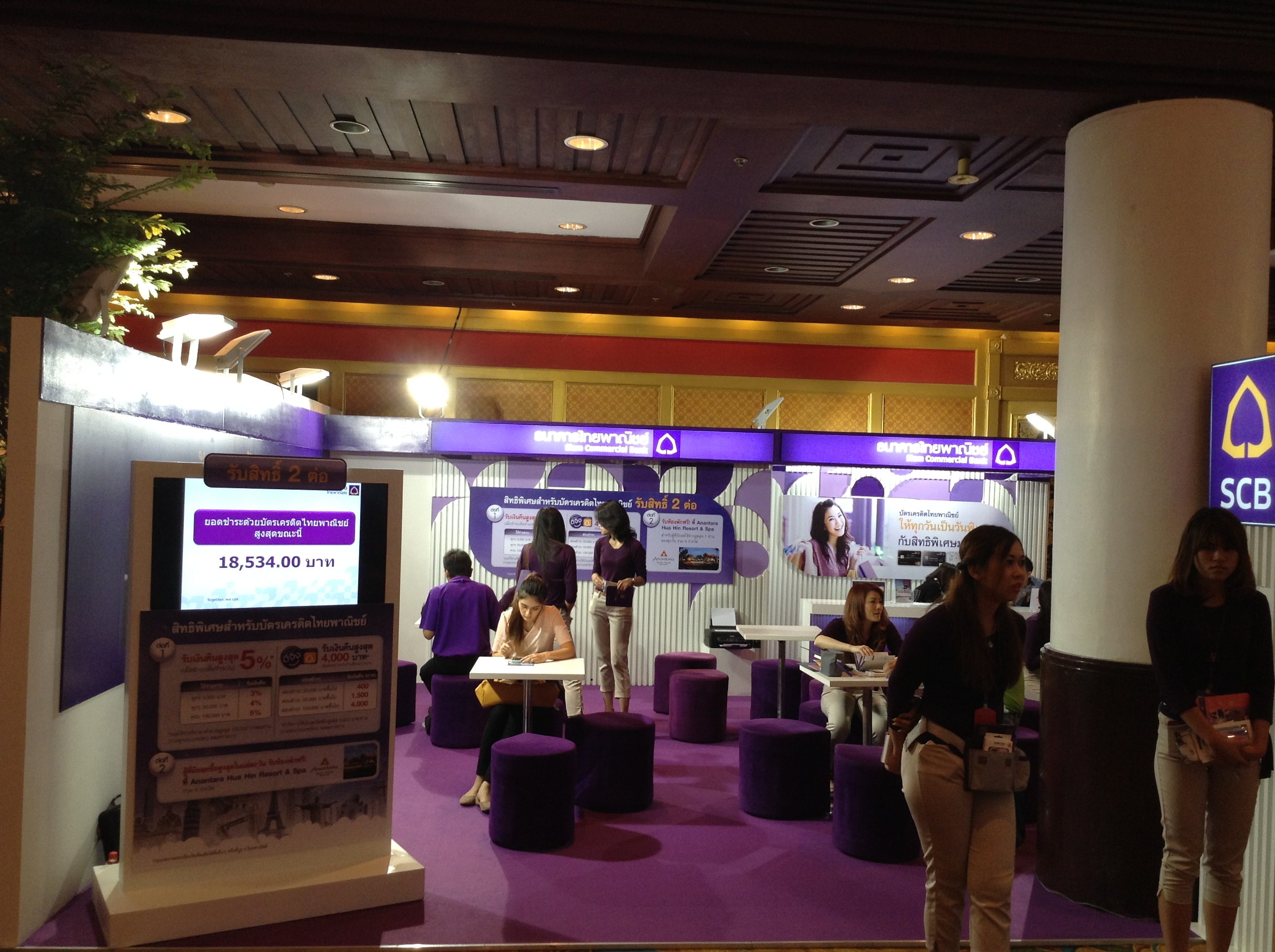 7) Two banks, Siam Commercial Bank and Thai Farmers Bank were present, sensing opportunities to sell packages, in cooperation with their branded credit card companies. Plenty of fly-now, pay-later deals were available on installments.