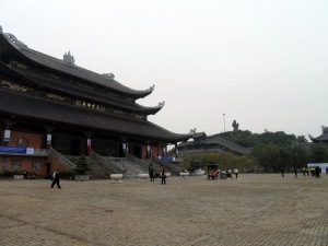 ![]() The courtyard cum parking area of the Bai Dinh pagoda, with another Buddha image on the hilltop in the distance. |
