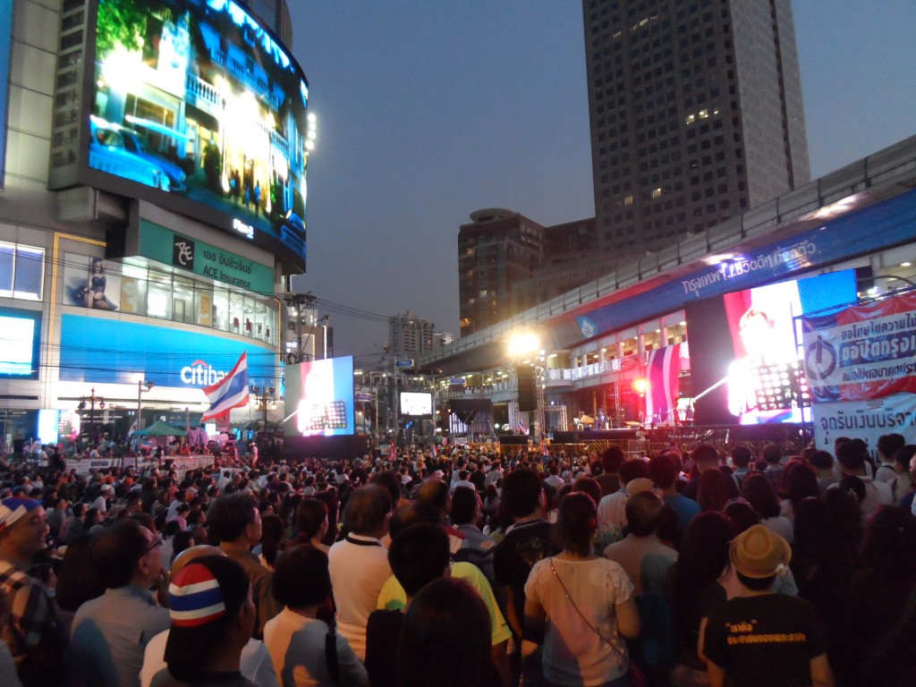 ![]() The scene in front of Central Department Store on Ploenchit Road where a new anti-government stage was erected earlier in the day. |
