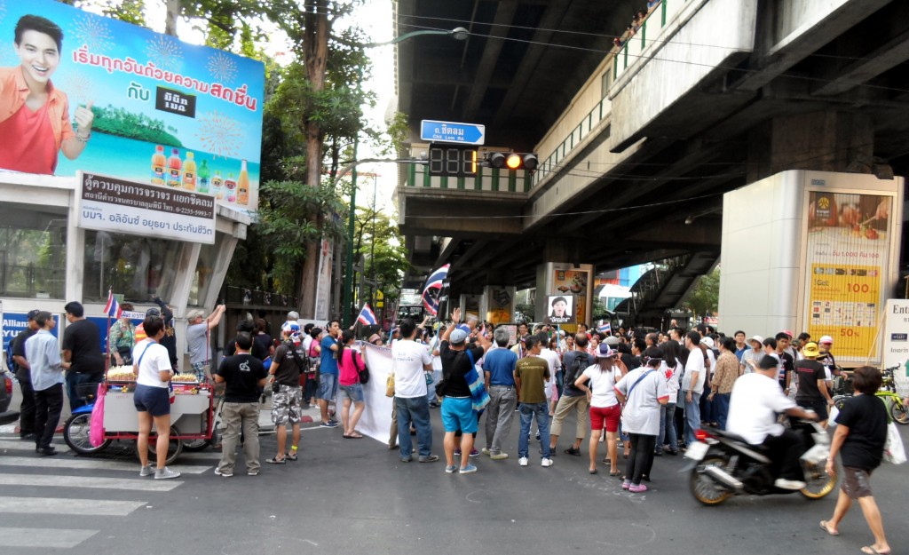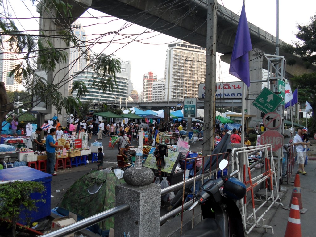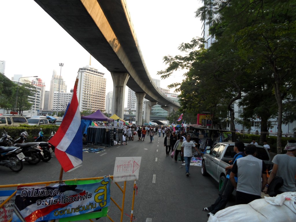 ![]() The protest site under the overpass at the intersection of Rama 4 and Silom road, in front of the Dusit Thani hotel. |