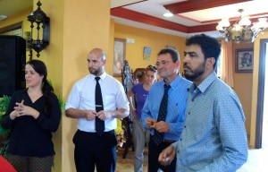 ![]() The owner and operator of the Los Al Mendros restaurant (second right) welcoming his Muslim patrons. |