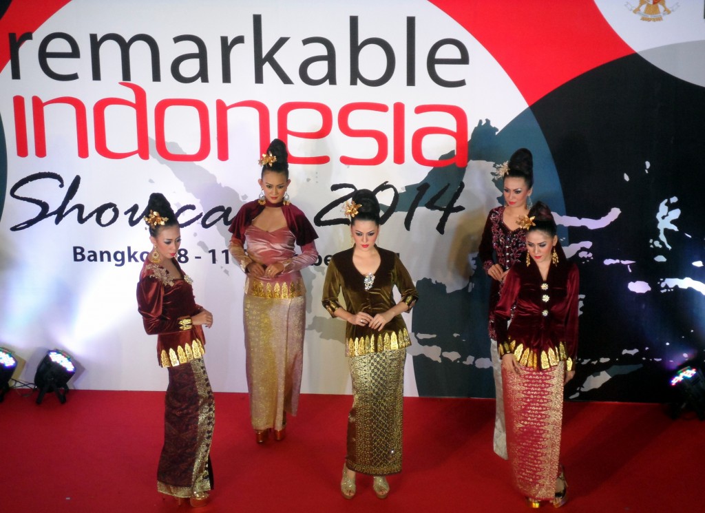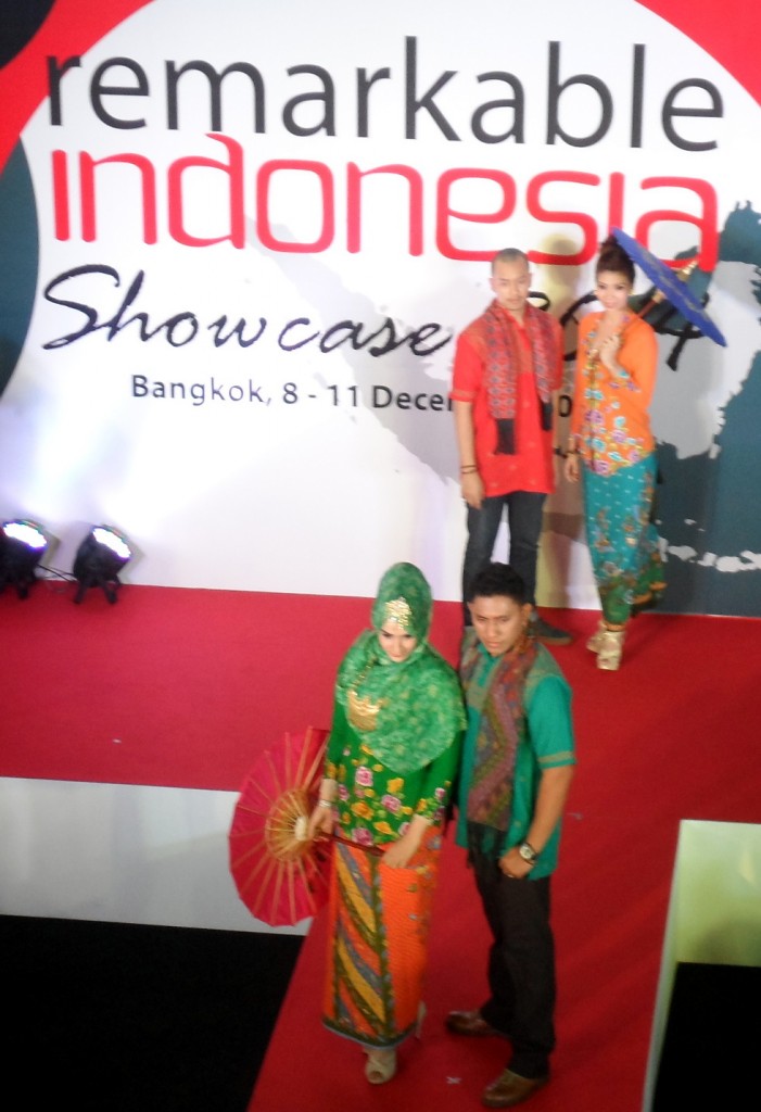 The opening ceremony featured traditional dance performances from the Indonesia School of Bangkok and staff of Indonesian Embassy as well as Palembang Dancers. The fashion show introduced Indonesian traditional and modern Batik, songket and modern design apparels from well-known designers. Lucky draws from Garuda Indonesia, Thai Lion Air, as well as from exhibiting companies were presented.