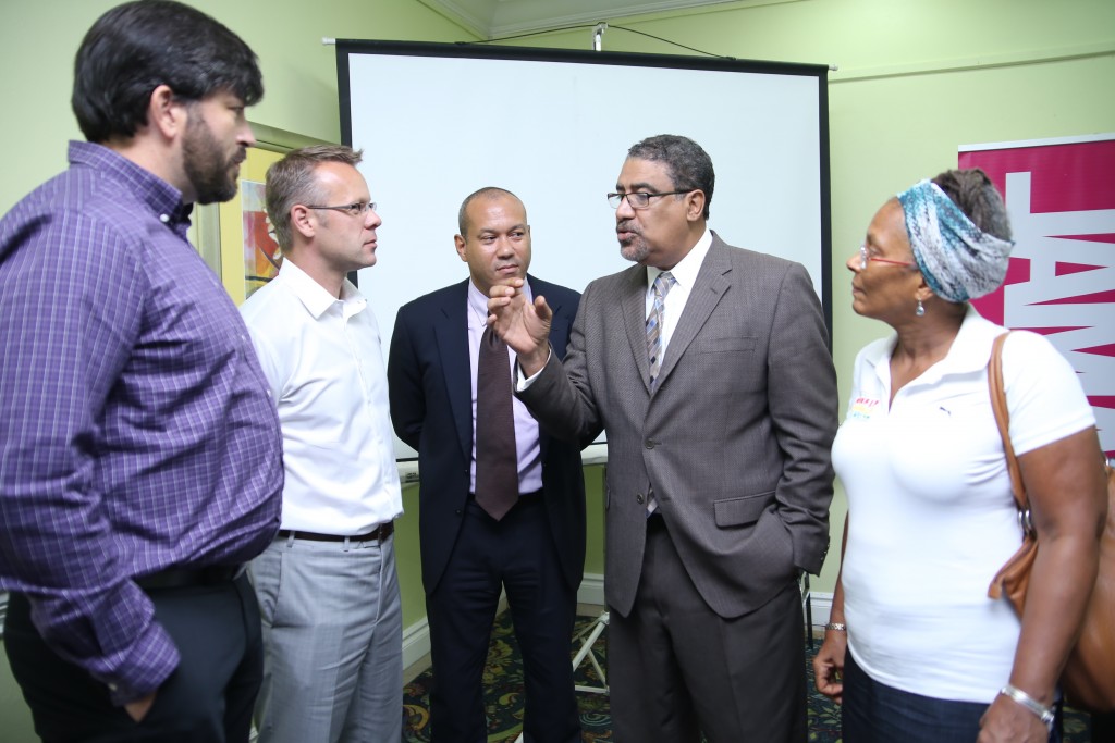 ![]() At the workshop, Dr. Wykeham McNeill (2nd right) with (from left), Director of Research, Canadian Sport Tourism Alliance, Anthony Fisher;Managing Partner of Canadian based firm The Data Jungle, Derek Mager; Deputy Director of Tourism, Jamaica Tourist Board (JTB), Jason Hall; and Director of Sponsorship and Marketing, Reggae Marathon, Diane Ellis. |