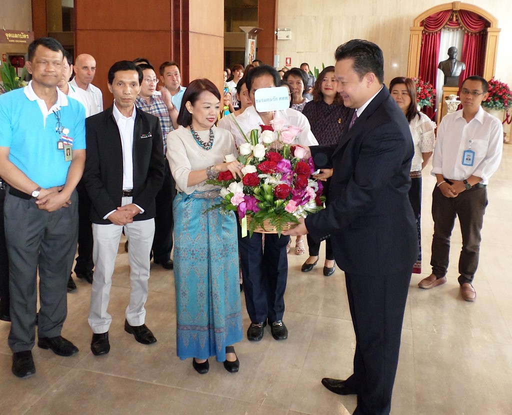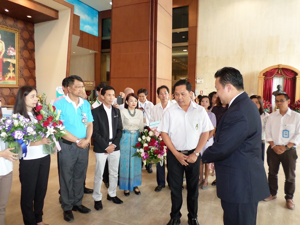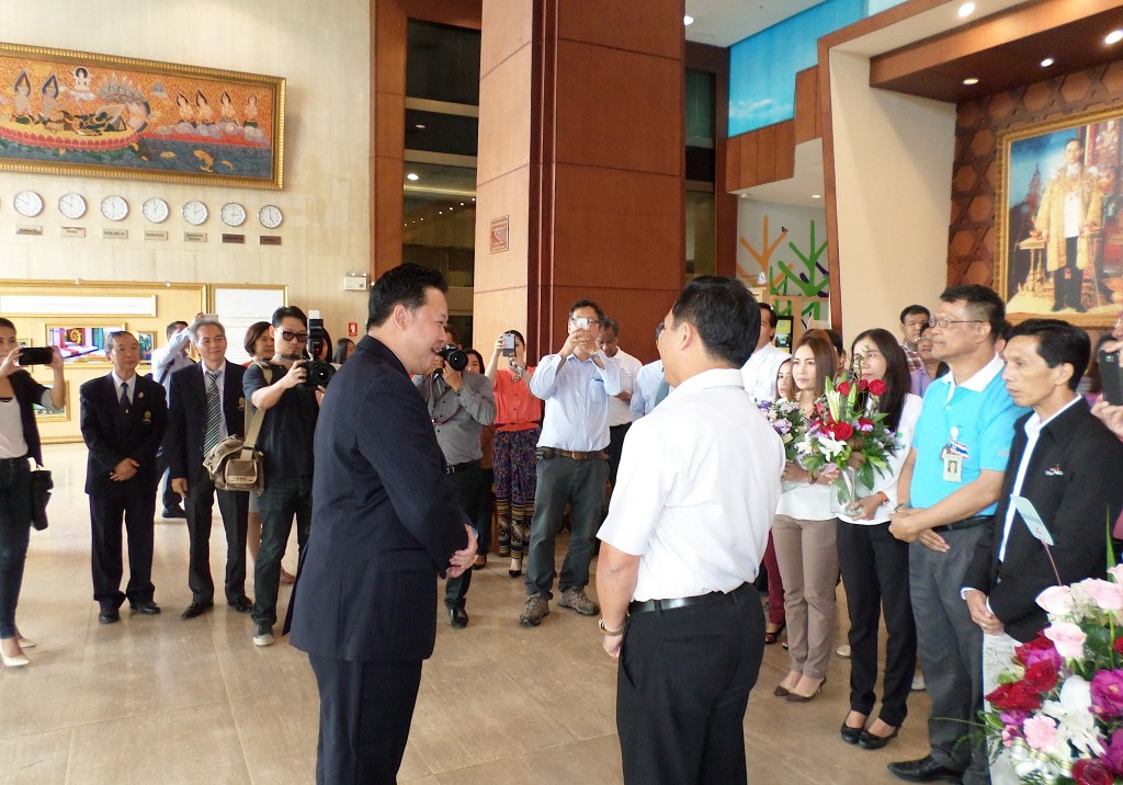 ![]() Mr Yuthasak being welcomed by TAT staff upon his arrival to sign the contract appointing him TAT Governor 2015-19. |
