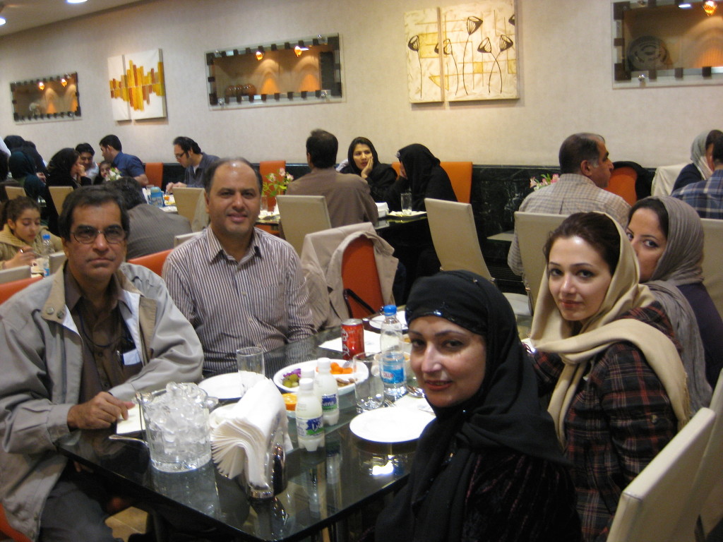 ![]() One of the committee members of the Iran tour operators association hosted my wife and me to a lunch at one of the great Tehran restaurants. He brought his family along too. His daughter is seated second right and his wife at extreme right. |