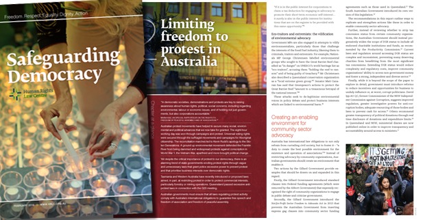 The report welcomes the repeal of excessive “move on” powers by the new Victorian Government and the removal of gag clauses from funding contracts by the new Queensland Government. It outlines a range of further steps needed at both federal and state level to reverse the trend of eroding our democracy and safeguard our democracy.
