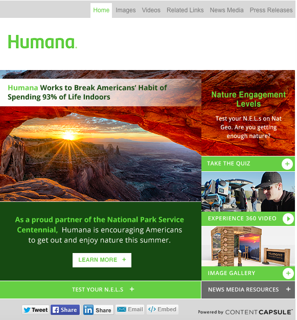 Humana’s broad effort to get people outdoors is supported by the N.E.L.s quiz, a national outdoor-inspired tour and 360-video of two popular national parks.