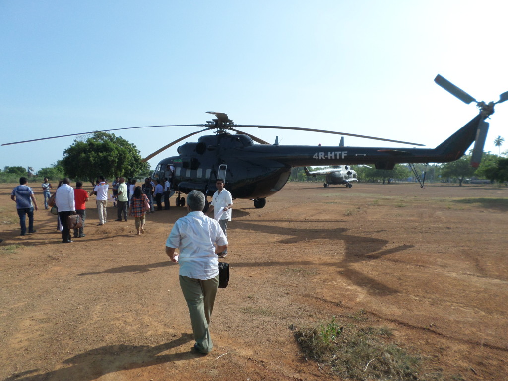 ![]() One of two military helicopters which ferried delegates from Passikudah to Jaffna and Colombo. |