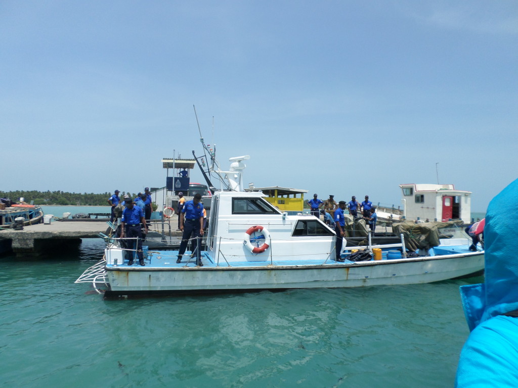 ![]() Naval patrol boats which ferried delegates to the island off Jaffna to visit the Nagadeepa Purana Viharaya Buddhist temple. |