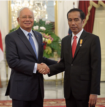 ![]() Malaysian PM Najib Abdul Razak and Indonesian President Joko Widodo at the opening of the World Islamic Economic Forum in Jakarta on August 2. |