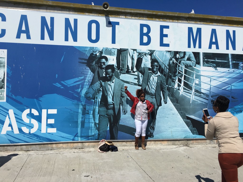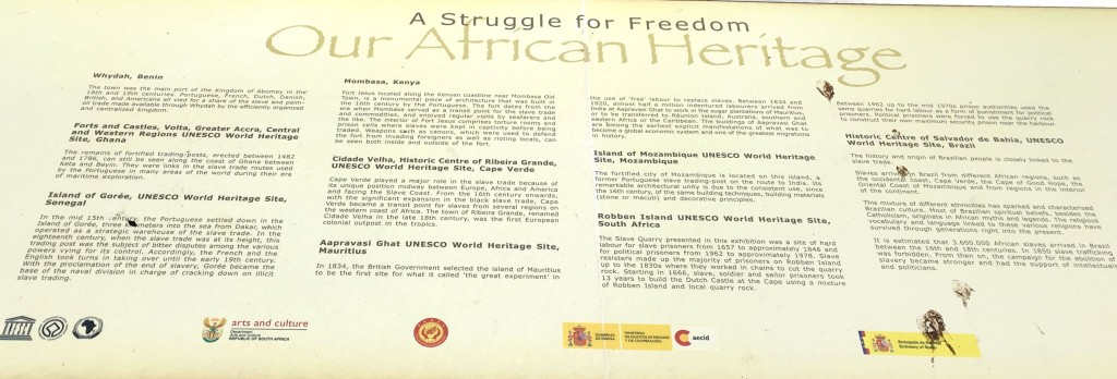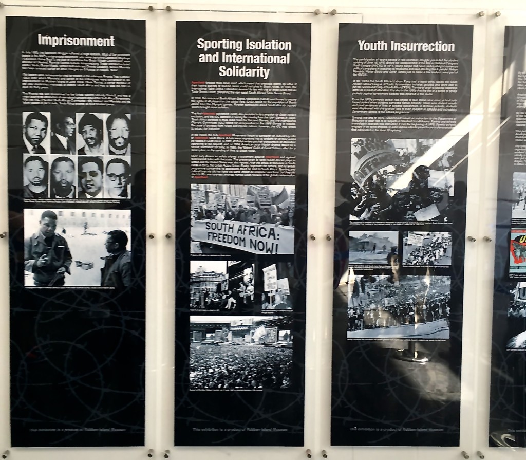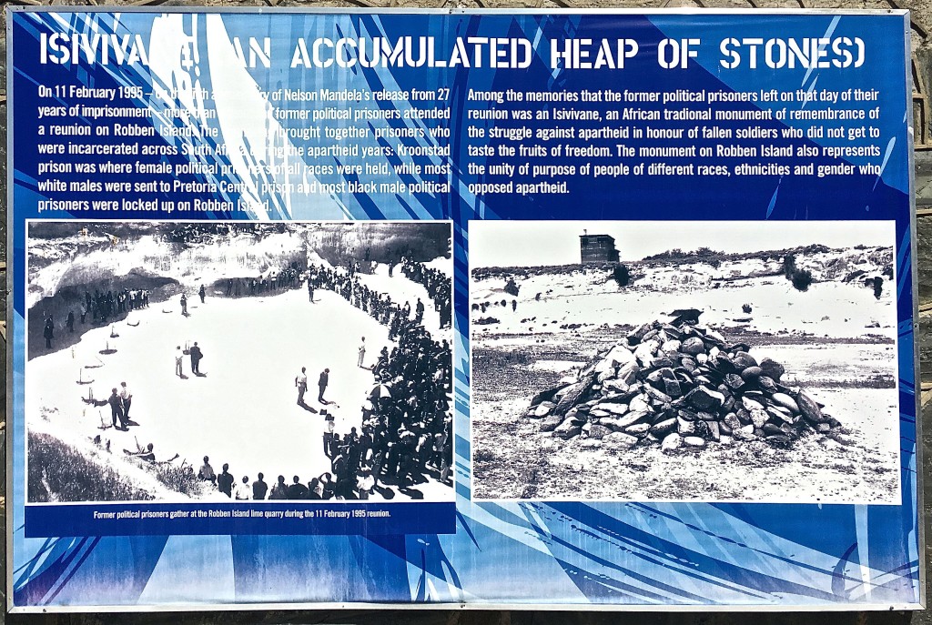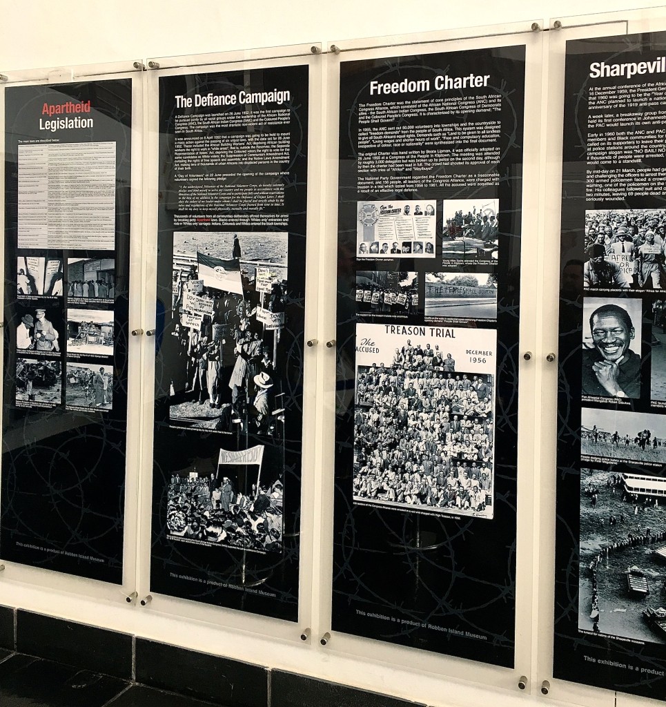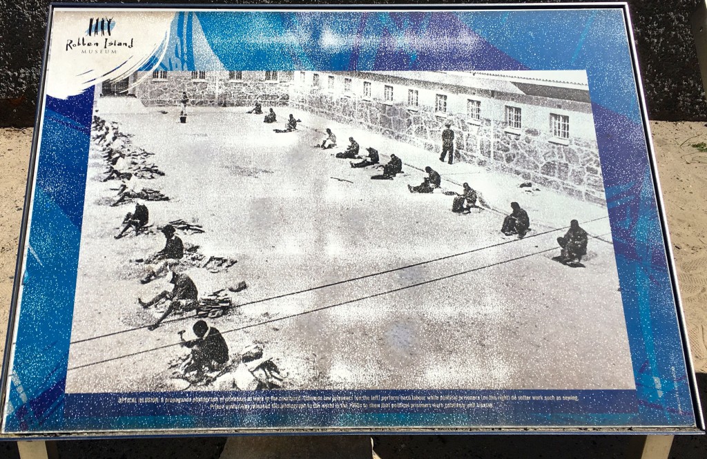 ![]() Other panels on the walls of the wharf provide further insights into the prison’s brutal history. As it says: “The monument on Robben Island also represents the unity of purpose of people of different races, ethnicities and gender who opposed apartheid.” |
