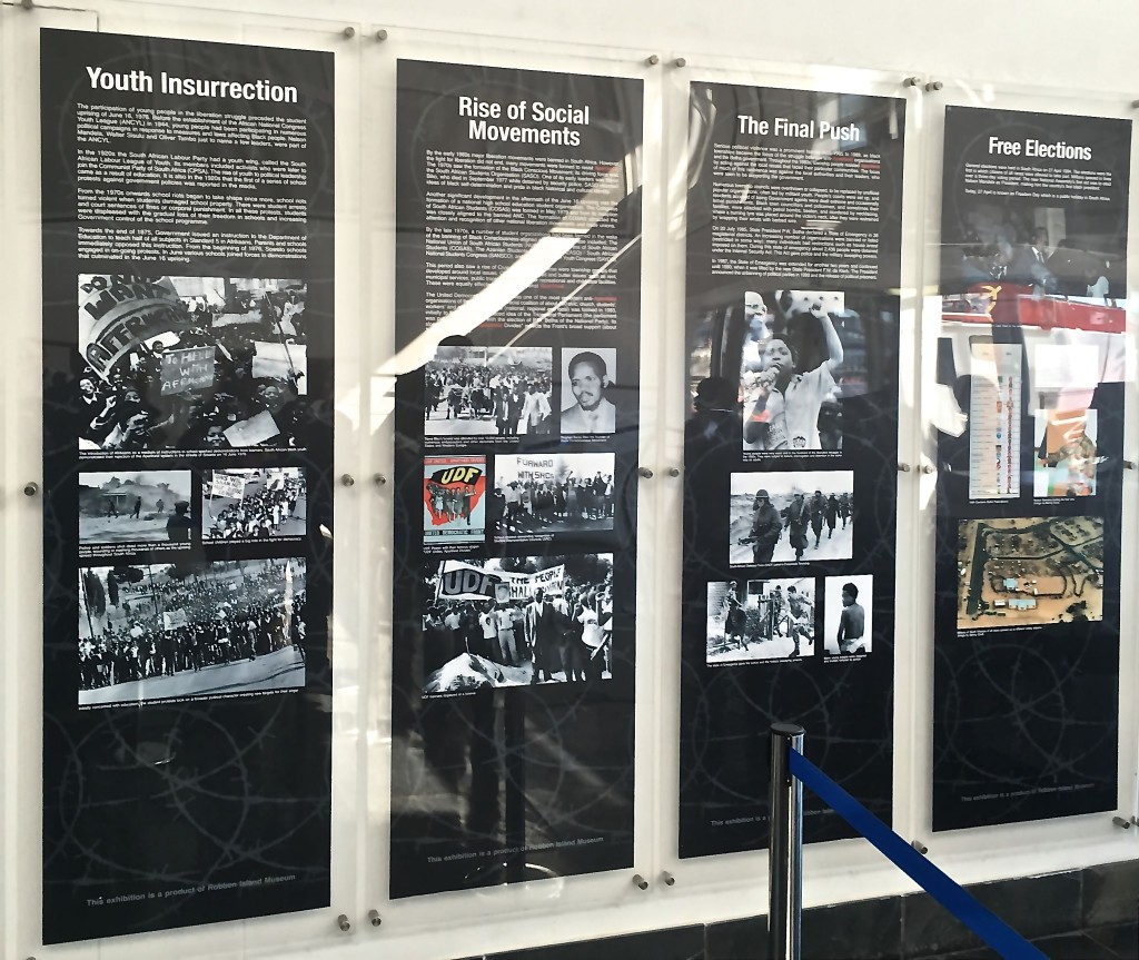![]() This display shows Mandela delivering a speech against the backdrop of his own image and other co-prisoners. |