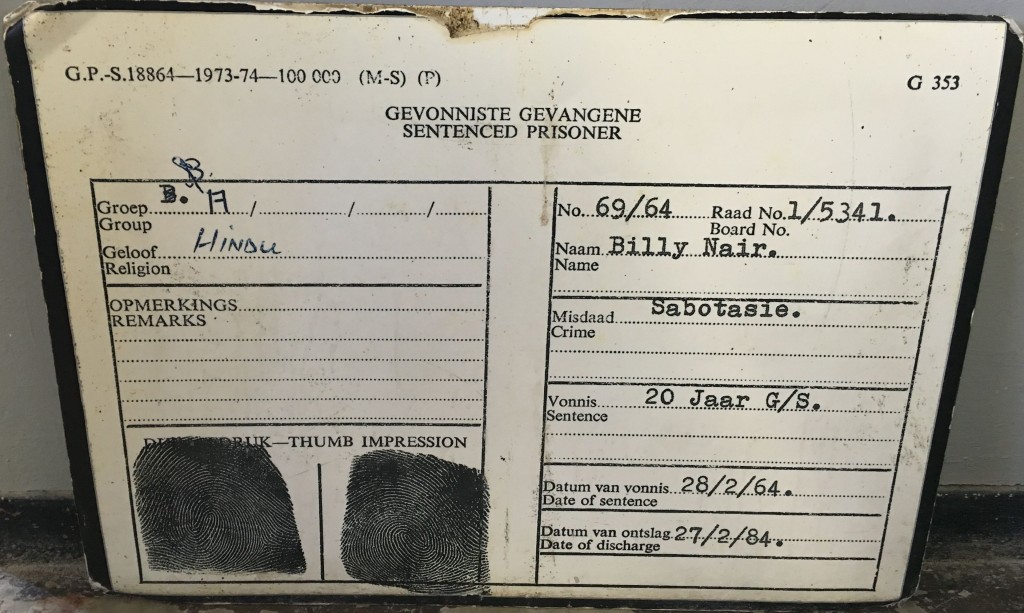 ![]() One of the prisoners, Billy Nair, clearly identified as a Hindu, sentenced to 20 years for “sabotage.” |