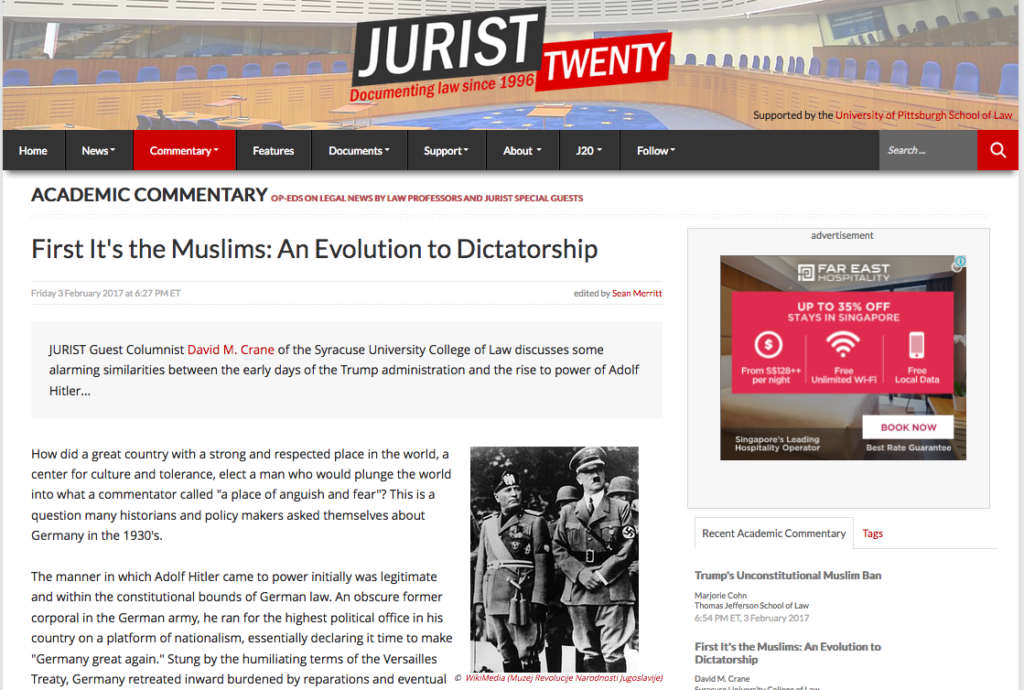 Bangkok – Here is a collection of articles that sound even more ominous warnings about the rise of Donald Trump, and the threat of another World War. They can be easily found via a Google search. Take these looming threats seriously. Or be ready to face the same havoc that Hitler caused, as the first article below explicitly warns. For travel & tourism ministers, corporate CEOs and heads of every travel industry association worldwide, the clock is ticking. Time to show some backbone and stand up for what is right.