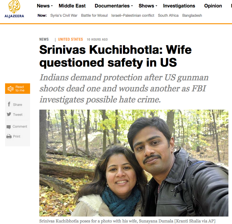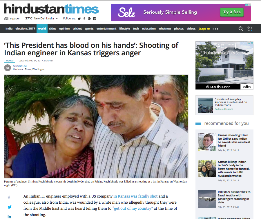 In mid-February, just a few days before killings, the U.S. travel industry had made a marketing foray into India. Right after the killings, the parents of the techie were telling Indians not to study in the U.S. They blamed the anti-Muslim hysteria whipped up by the U.S. administration, directly accusing President Donald Trump of having blood on his hands.