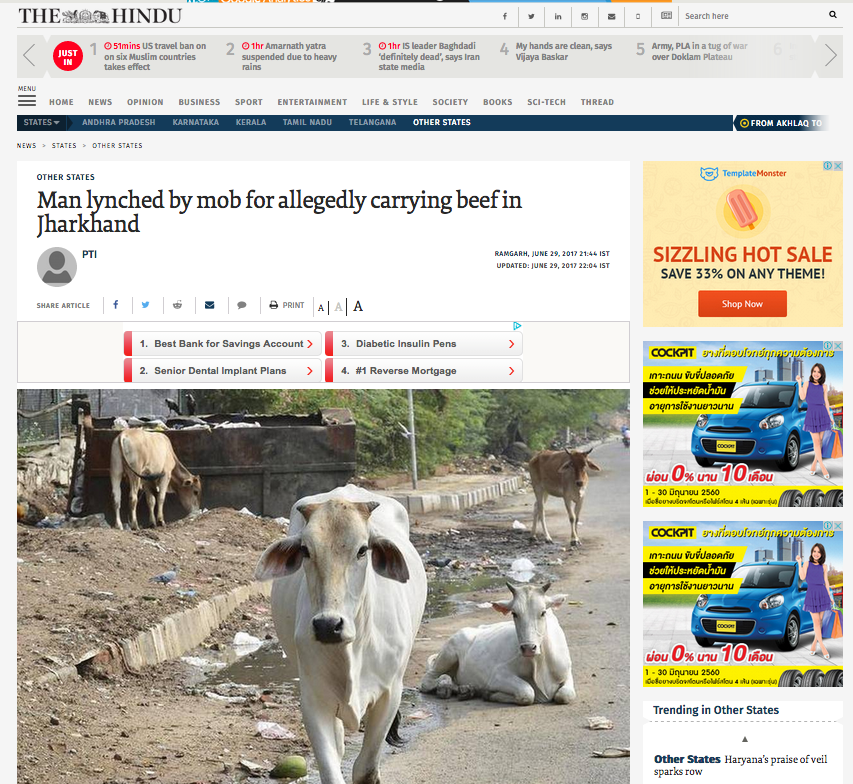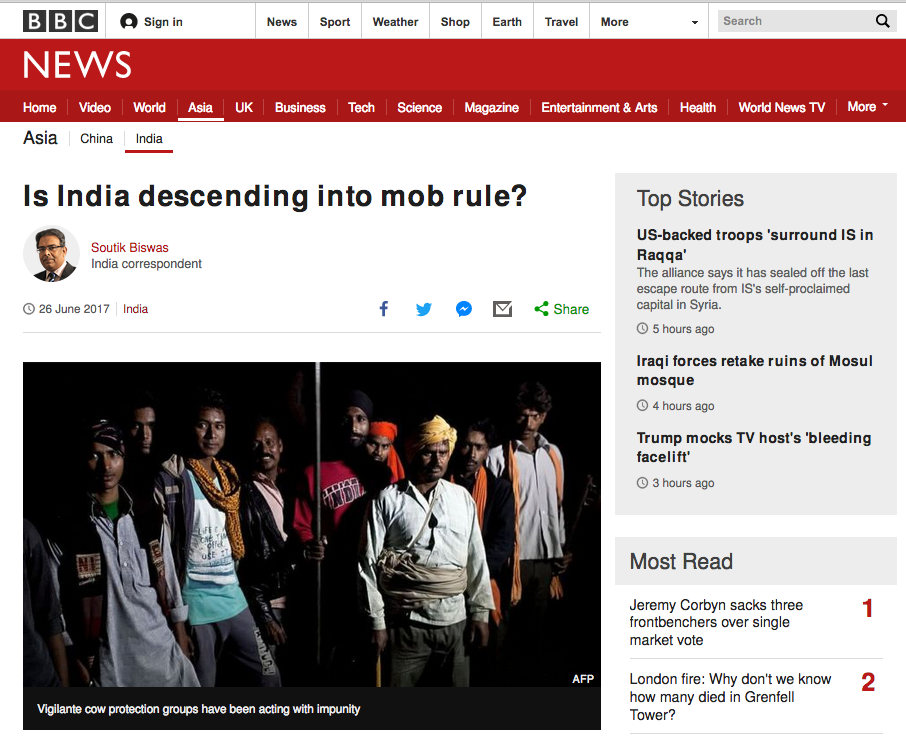 India’s image is taking a global battering these days. Here is a collection of news items, both in India and abroad, showing the public relations crisis facing the country as it abandons its once cherished democratic, secular credentials and steadily drifts towards becoming a Hindu theocracy Modictatorship. The impact of this on travel & tourism will need to be closely monitored by the industry. The Indian government is gung-ho about combatting terrorism but apparently can’t control its own indigenous lynch mobs.