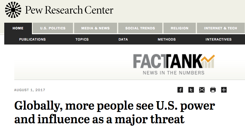 Pew Research: Globally, more people see U.S. power and influence as a major threat