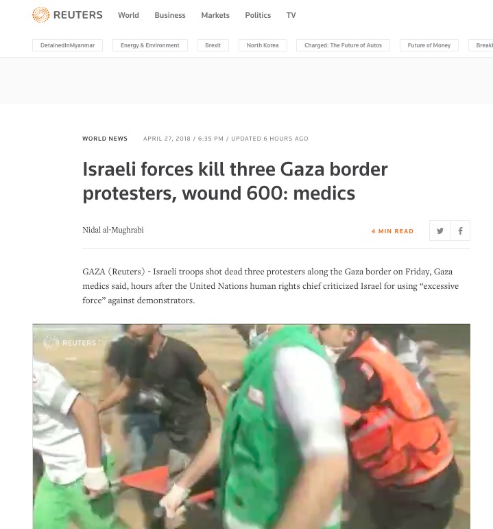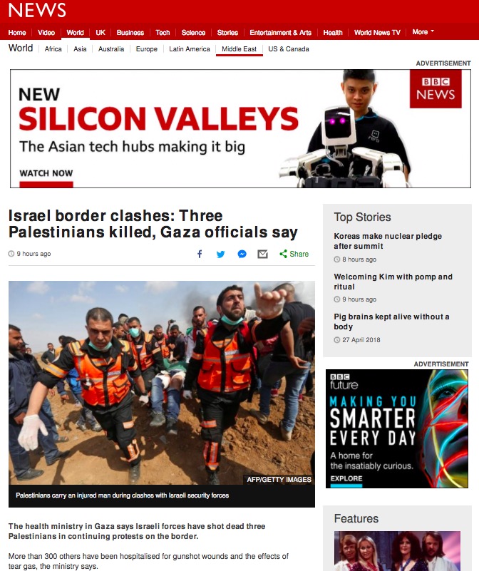 On the same day that the Korean peace deal was announced, the Israelis killed three Palestinians protesting to rid themselves of Israeli occupation. According to the United Nations, the Israeli army has killed more than 40 Palestinians and injured 5,500 in just one month alone. Over time, perhaps a long time, I guarantee that the Israelis will find this live-and-let-die policy unsustainable.