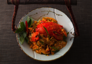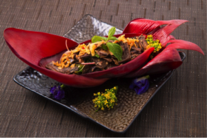 Signature Dishes created for Mango Tree Mumbai include Thai Betelnut Leaf Wrap (Miang Kham), Phad Thai Spring Roll (Por Pia Phad Thai), Clear Tom Yum Soup Seafood Hotpot (Poh Taek) Banana Blossom Salad (Yum Hua Plee), Mango Tree Lobster Phad Thai (Lobster Phad Thai), Crab in Yellow Curry Sauce (Poo Phad Phong Karee), Two-way Fish (Pla Song Withi) and Massaman Curry Lamb Shanks (Massaman Kha Kae)