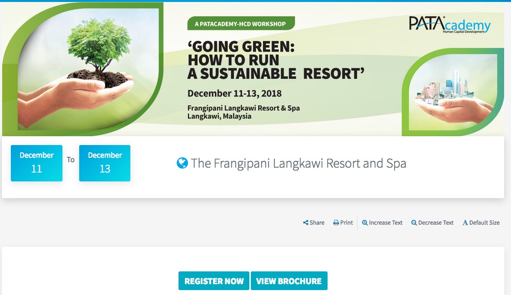 Between Dec 11-13, Mr Wong will lead a PATAcademy-HCD workshop to share his expertise on how to incorporate sustainable, eco-friendly business practices into hotels, destinations, schools, homes, restaurants and just about anywhere else. Says Mr Wong, “I am taking the UN Sustainable Development Goals forward by showing how everyone can become part of the solution. I would like to see these easy-to-adopt ‘green’ practices become the industry norm right across Malaysia, ASEAN and the Asia-Pacific region.”