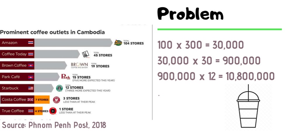 The Cambodian young leader said that Phnom Penh has roughly 300 baristas, all serving coffee in plastic containers. If each serves 100 customers a day, that is 30,000 containers. Per month, multiplied by 30, that would be 900,000 containers, or a monstrous 10.8 million annually. Local citizenry is also part of the problem. The Timor-Leste young leader showed several pictures of piles of roadside trash strewn in a country of just over one million people.