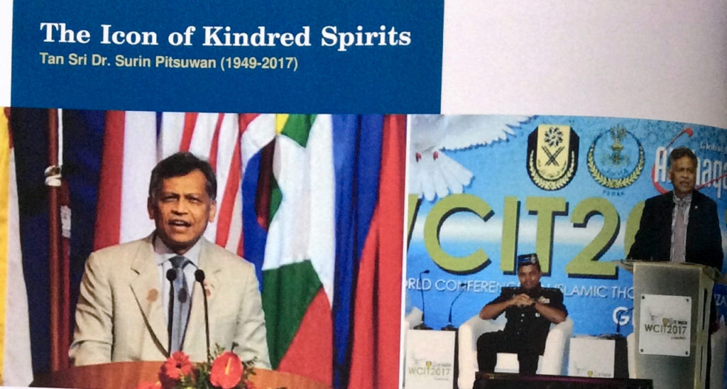 Tan Sri Dr Surin is hailed for his key role as cultural bridge. His background as a Thai Muslim from humble origins born in Nakhon Sri Thammarat, in a village populated by Malays from Kedah as well as his academic qualifications, such as his dissertation on “Islam and Malay nationalism”, served as a framework to analyse the situation in the Thai SBPs. He strongly felt a personal sense of responsibility to engage Muslims in peace building. Indeed, the government of Perak was mulling the setting up of an Islamic Centre for Global Peace and Non Violence in Kuala Kangsar, probably with Dr Surin to be appointed as the first chairman. Sadly, Dr Surin died suddenly on 30 Nov 2017.