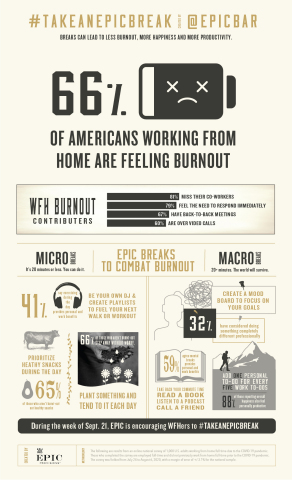 MINNEAPOLIS, 21 September 2020, BUSINESS WIRE – Today, EPIC unveiled the results of a national survey it conducted to understand how Americans are faring in the new work-from-home environment that is dominating 2020 due to the COVID-19 pandemic. While it’s no surprise that two-thirds (66%) of work from homers (WFHers) are feeling some degree of burnout, the findings also show that nearly one-third (32%) have thought about doing something completely different professionally.