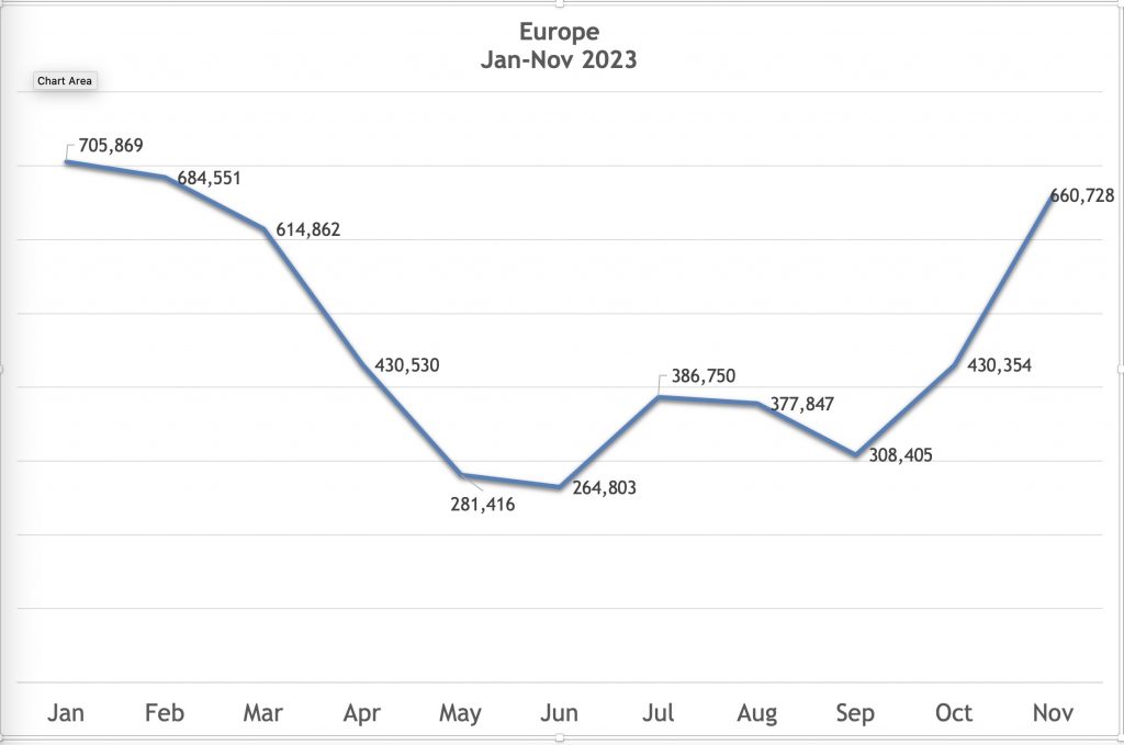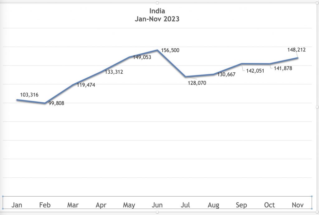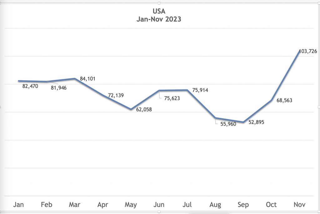 The reason for the surge in arrivals in Oct – Nov is not exactly clear. Nevertheless, it’s good news. Next year will be an election year, which raises the possibility of a slowdown, if not a decline.