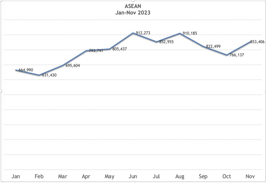 The early October 2023 shooting of Chinese tourists in a popular Bangkok shopping mall led to a sharp drop in daily arrivals for a few days. Rapid deployment of Thailand’s well-oiled tourism crisis management machinery mitigated the damage. The result was actually a small increase in arrivals from China in October. The overall number of Chinese visitors is still well below the 2019 level of 10 million, but the TAT’s six offices in China plus the private sector and airlines are going all out to bring them back. In the absence of any unforeseen events, that number may be reachable in 2024.
