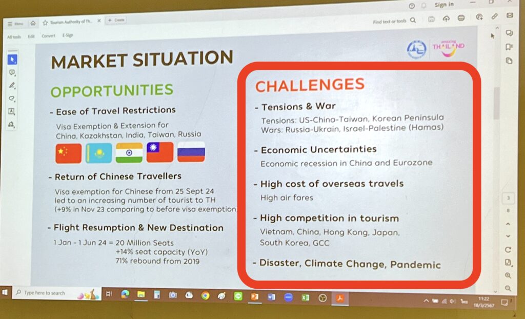 Why is the future “unpredictable”? The answer emerged not in the presentations during the forum but in an earlier one by a senior official of the Tourism Authority of Thailand to the PATA Thailand chapter executive committee. This slide showed exactly why the industry is in an unpredictable stage.