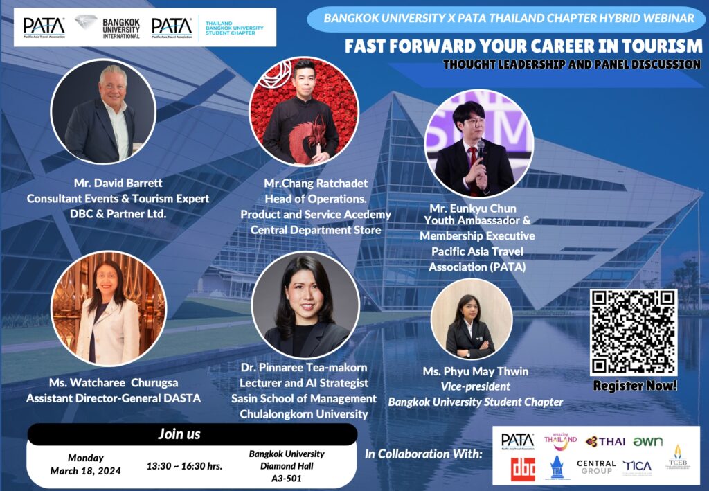 Bangkok — On 18 March 2024, more than 1,500 university students of tourism, including about 700 onsite and another 800 online, attended a half-day forum organised by the PATA Thailand chapter and Bangkok University to “Fast Forward” their careers. It ended with a round of self-congratulatory applause and predictions of a bright future. But a closer look at the presentations shows that young people are not so sure. On the contrary, they harbour real concerns about their future job prospects and want this generation to act on it.