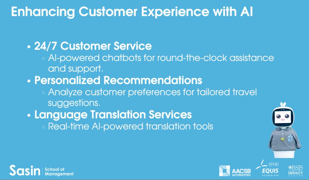 She flagged how AI would change just about everything in Travel and Tourism, from customer experience to operations and marketing to security and sustainability. One slide showed a human-free hotel lobby. Effectively, her message was that everything the students were learning in university today will be pretty much obsolete by the time they finish.