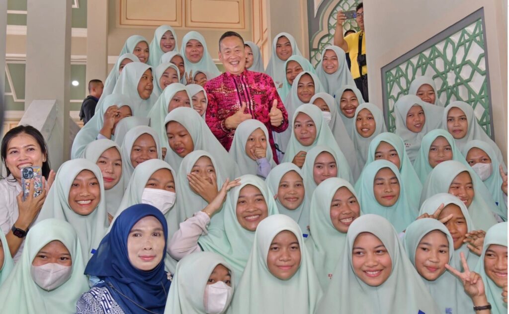 The Prime Minister admitted that his visits to the Krue Se Mosque and Pattani Central mosque were the first time he had entered a mosque. “I was impressed by the smiles and goodwill that the citizens welcomed me with. I saw peace and serenity in the eyes of all. I saw the beauty of the Pattani Central Mosque which was built a very long time ago. Let it be a tourist attraction not just for visits but also to promote (interfaith) discussions among religious leaders as well.” At the Islamic Cultural Heritage Museum and Quran Learning Center, the Prime Minister had his name inscribed in Arabic calligraphy and was presented with a hand-painted portrait.
