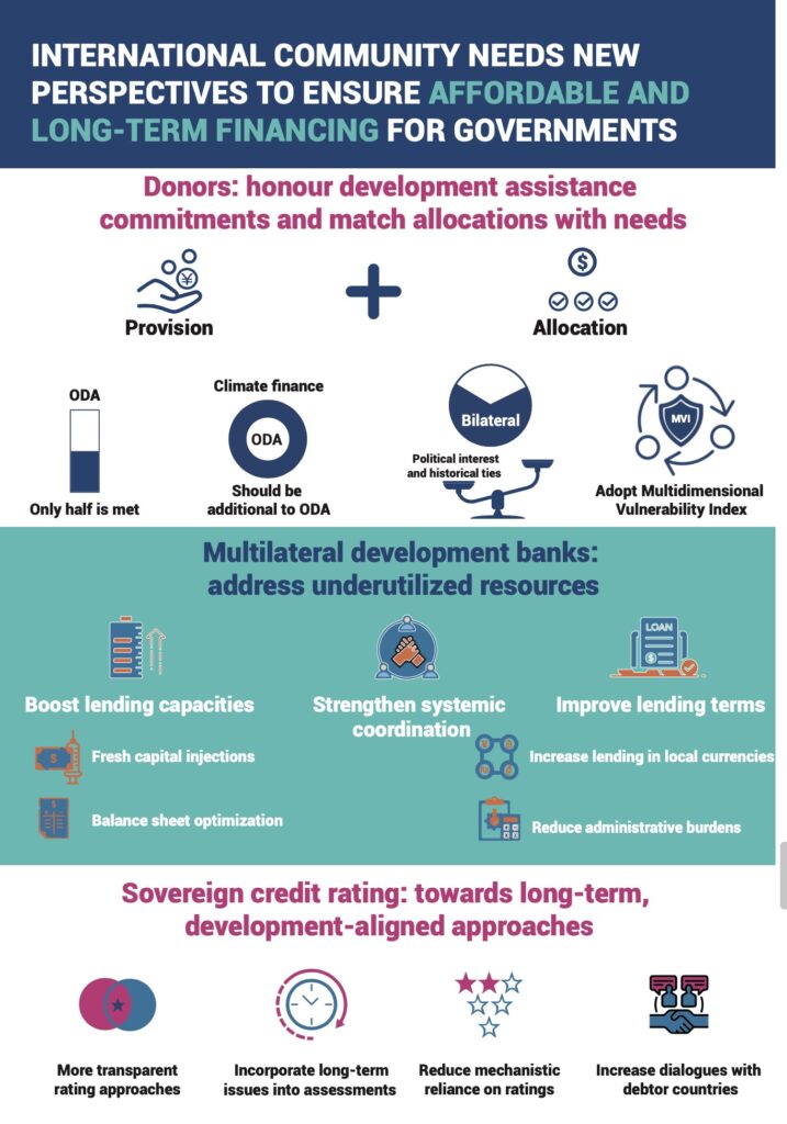 2. Addressing underutilized resources and capacities of multilateral development banks: Fresh capital injections for multilateral development banks are urgently needed to catch up with the growing development needs of developing countries. In the meantime, the banks can better leverage their existing capital, increase lending in local currencies, reduce the administrative burden of loan packages and work closely with each other to amplify their collective lending capacities.