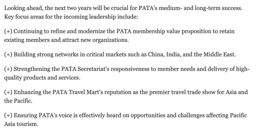 Having covered PATA since attending my first PATA annual conference in Bangkok in 1982, I have heard these speeches way too often. History shows that they are only as good as the next crisis or a changing of the guard, whichever comes first. Moreover, PATA continues to be dragged down by the miscued and misguided influence of people who have been sitting uninterrupted on its boards and committees for decades.