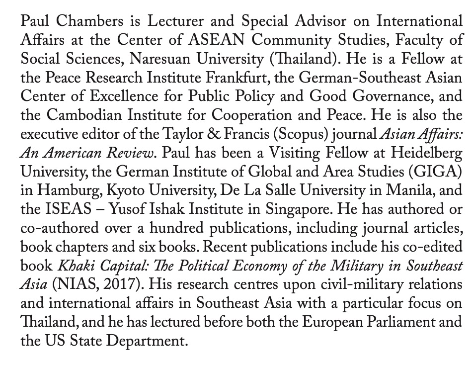 The book is authored by Prof Paul Chambers. Here is his professional pedigree cited in the book.