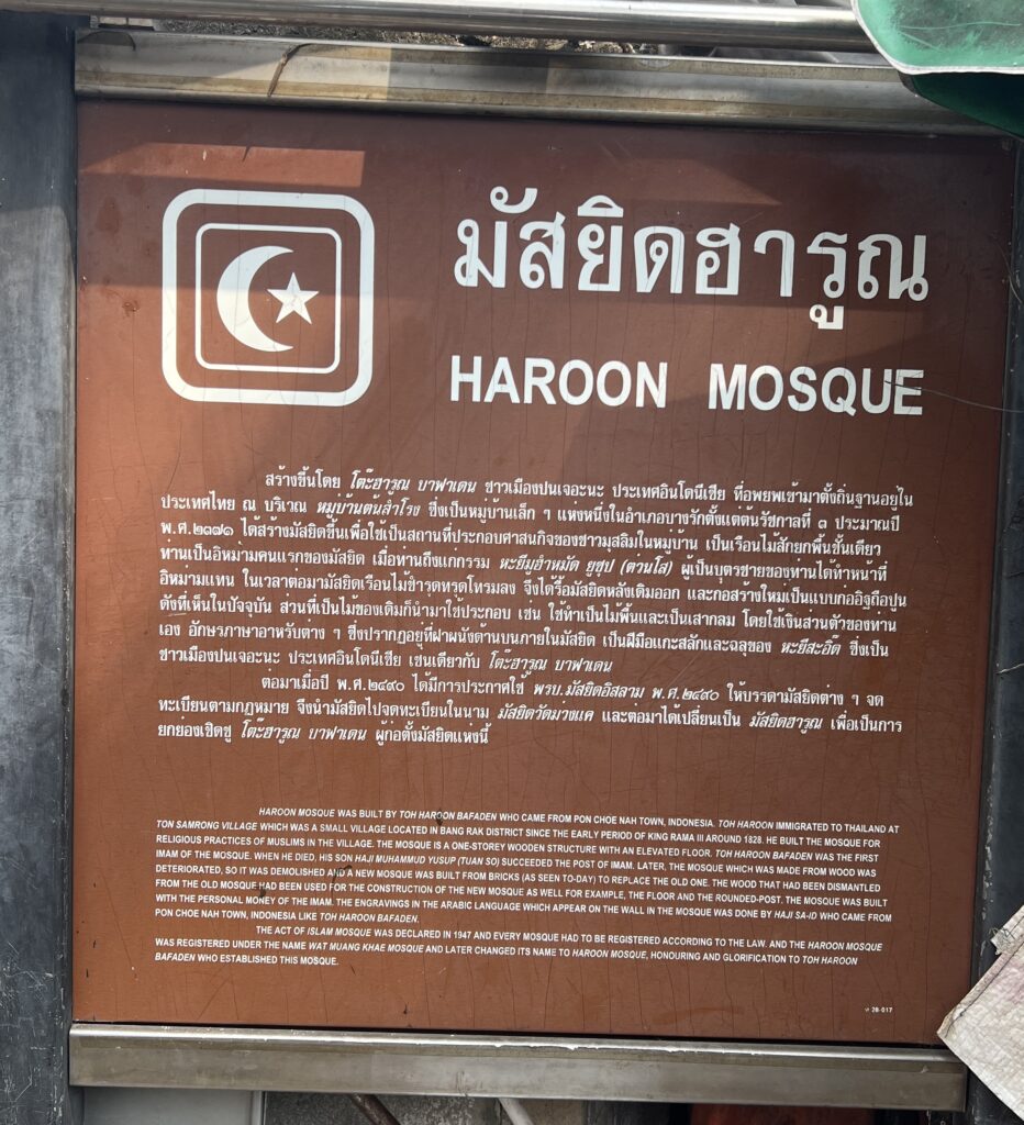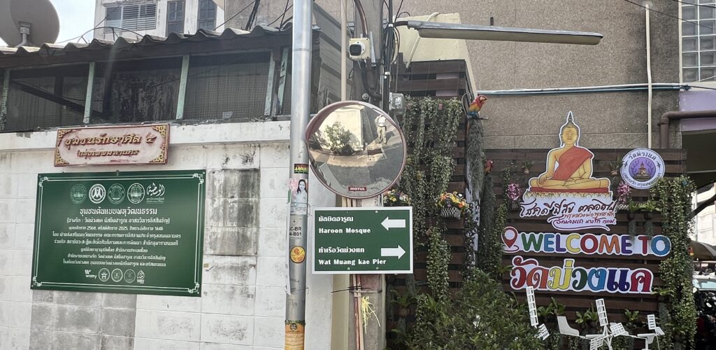The three houses of worship, Wat (Temple) Muang Kae, Haroon Mosque and Assumption Cathedral, are all cultural icons located within 300 metres of each other, right behind the famous Oriental Hotel and next door to the French embassy. They are visited by hundreds of tourists every day.