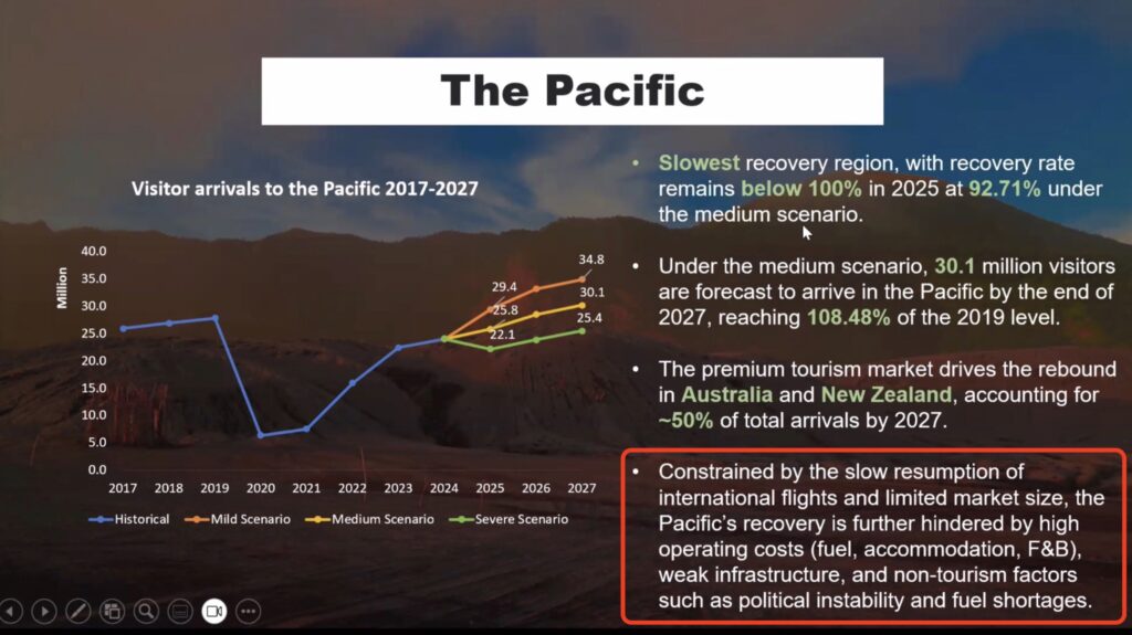The PATA forecasting webinar promised that the data and analysis would deliver “essential insights to help you (industry policymakers, business leaders, tourism strategists) build adaptive strategies and leverage growth opportunities in this pivotal phase.” It said participants would “understand how global macroeconomic shifts, climate action, visa liberalisation, and technological innovation are reshaping tourism flows”. They could expect to “discover key source markets driving demand in the post-recovery landscape – with a focus on evolving preferences, demographics, and travel purposes.”