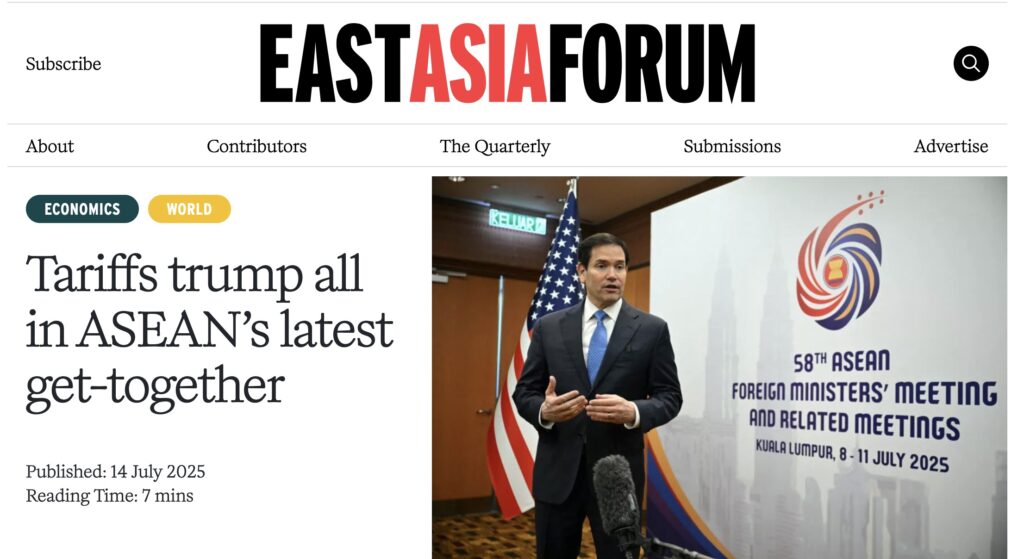 A critical part of the Trump II administration’s Make America Great Again policy, the tariffs are a clear attempt to divide and rule the world to serve U.S. geopolitical and geoeconomic interests. Depending on their level of exposure to the U.S. market, ASEAN countries are being forced to break ranks and negotiate separate deals to safeguard the interests of their exporters.
