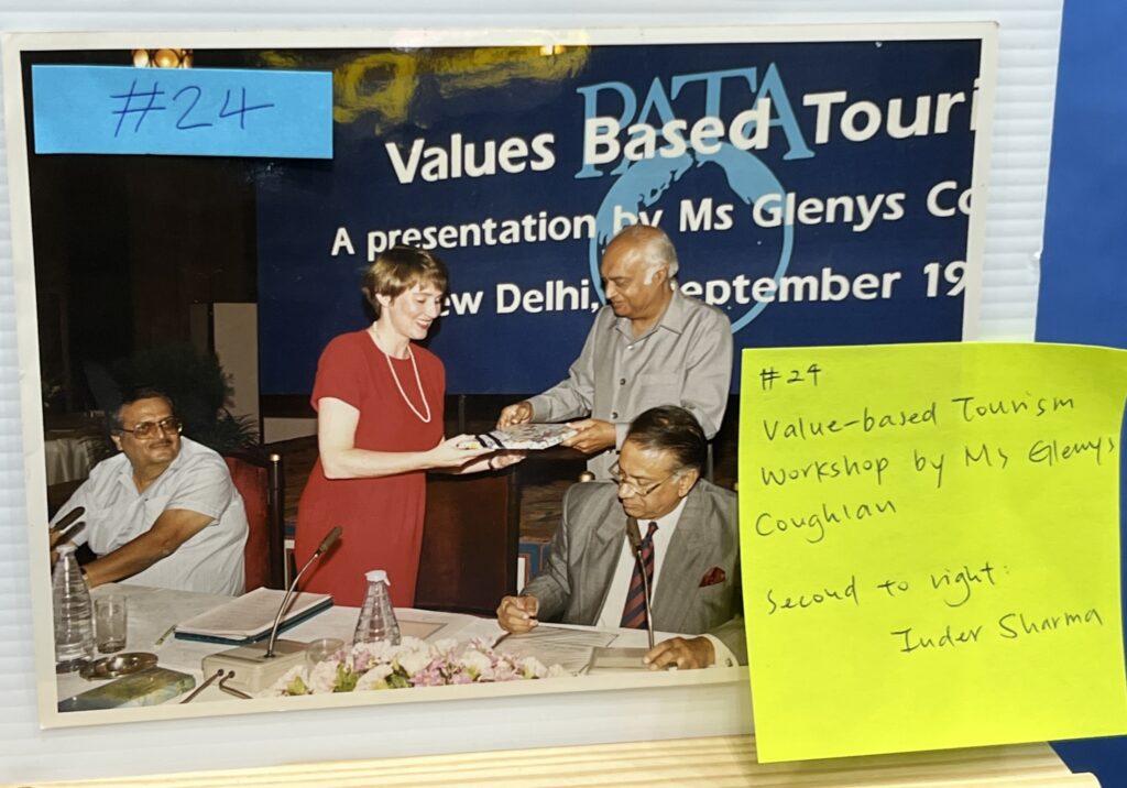 One such valuable detail is in a photograph showing Mrs Glenys Coughlan, a former PATA President (now known as chairman) giving a talk to the PATA India chapter, then headed by former PATA President Inder Sharma, on “Values-based Tourism”. Coined after the historic PATA conference on the Environment in Bali in 1991, the term is identical in concept to the current “Meaningful Tourism” Mission and Vision statement adopted by PATA.