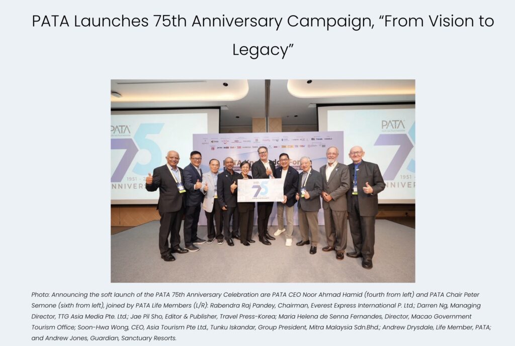 He added, “It is in that same spirit — honoring the founders’ vision and embracing our ongoing mission — that I am delighted to officially launch the celebrations for PATA’s 75th Anniversary in 2026.”