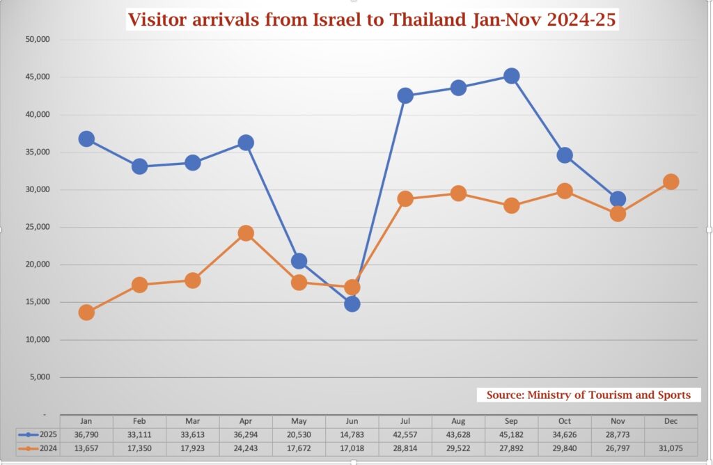 Bangkok — The Israel-Palestine conflict has had a direct impact on visitor arrivals from Israel to Thailand in 2025 and will impact Thai travel & tourism well into 2026 and beyond.