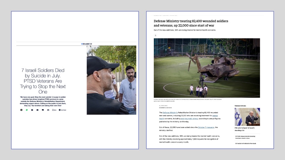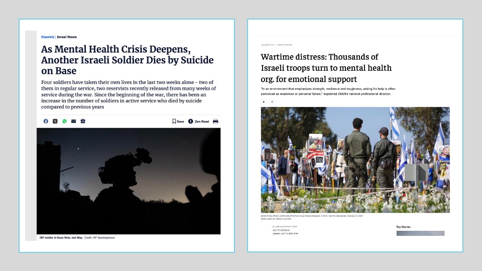 As clearly indicated in the images of the news reports below, many Israelis are suffering from mental health problems. They come to Thailand for “rest and recreation” to overcome the trauma of the battlefield. With numerous United Nations reports now clearly describing Israel’s military assault on Gaza as “genocide”, this means Thailand is effectively providing “health and wellness” services and sanctuary to alleged genocidal war criminals.