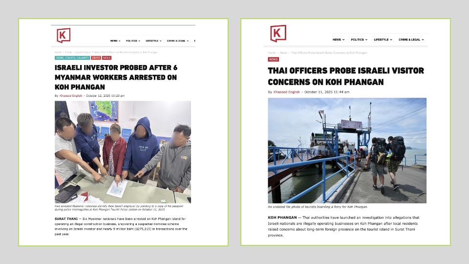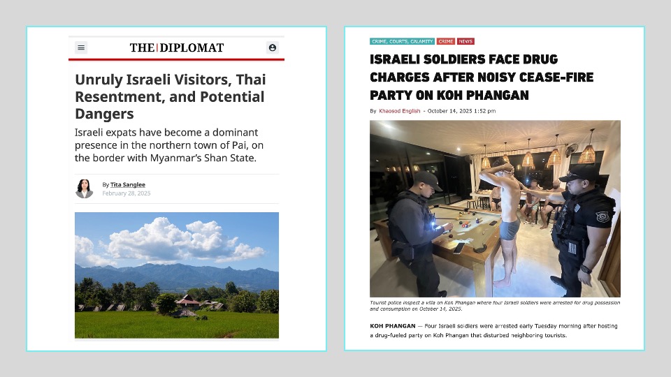 Visitor arrivals from Israel to Thailand plunged from 45,182 in Sept 2025 to 28,773 in November 2025, just a little higher than 26,797 visitors in November 2024. This fall comes in the wake of multiple news reports about the misbehaviour of and illegal activities by Israel “visitors” setting up large swathes of occupied enclaves in a number of Thai provinces.
