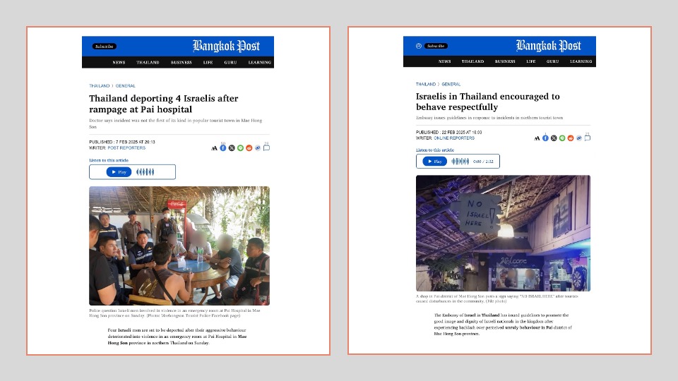 Thailand is by far the most popular destination for Israelis in Asia. They get visa-free access, similar to other countries such as Sri Lanka, Cambodia, Laos, the Philippines and Vietnam. But questions are being raised about this access given the clear threat Israelis pose to Thailand’s national security and public safety.