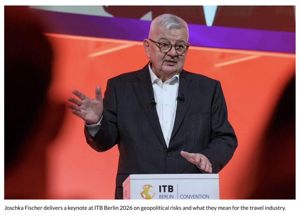 ITB Berlin, the world’s largest travel trade show, celebrated its 60th anniversary this year under the theme of “Achieving Balance in Tourism.” Just three days before its opening, the event was overshadowed and disrupted by the 28 February US-Israeli attack on Iran. However, that allowed the keynote speaker, former German Foreign Minister Joschka Fischer, to draw upon his past diplomatic experience to reflect on the future of global geopolitics.