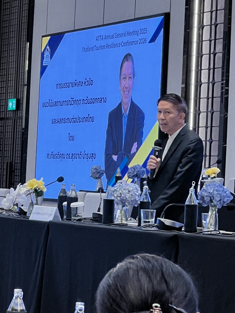 Bangkok – One of Thailand’s distinguished political scientists has warned the Thai Travel & Tourism industry to prepare for the “consequences” that will follow even after the Middle East conflict ends, including the “psychological” safety factors. The clear warning by Professor Emeritus Dr. Surachart Bamrungsuk, Faculty of Political Science at Chulalongkorn university, in a 27 March 2026 speech to the Association of Thai Travel Agents, has set the stage for a broader consideration of ALL the consequences that will hit long after the guns fall silent.