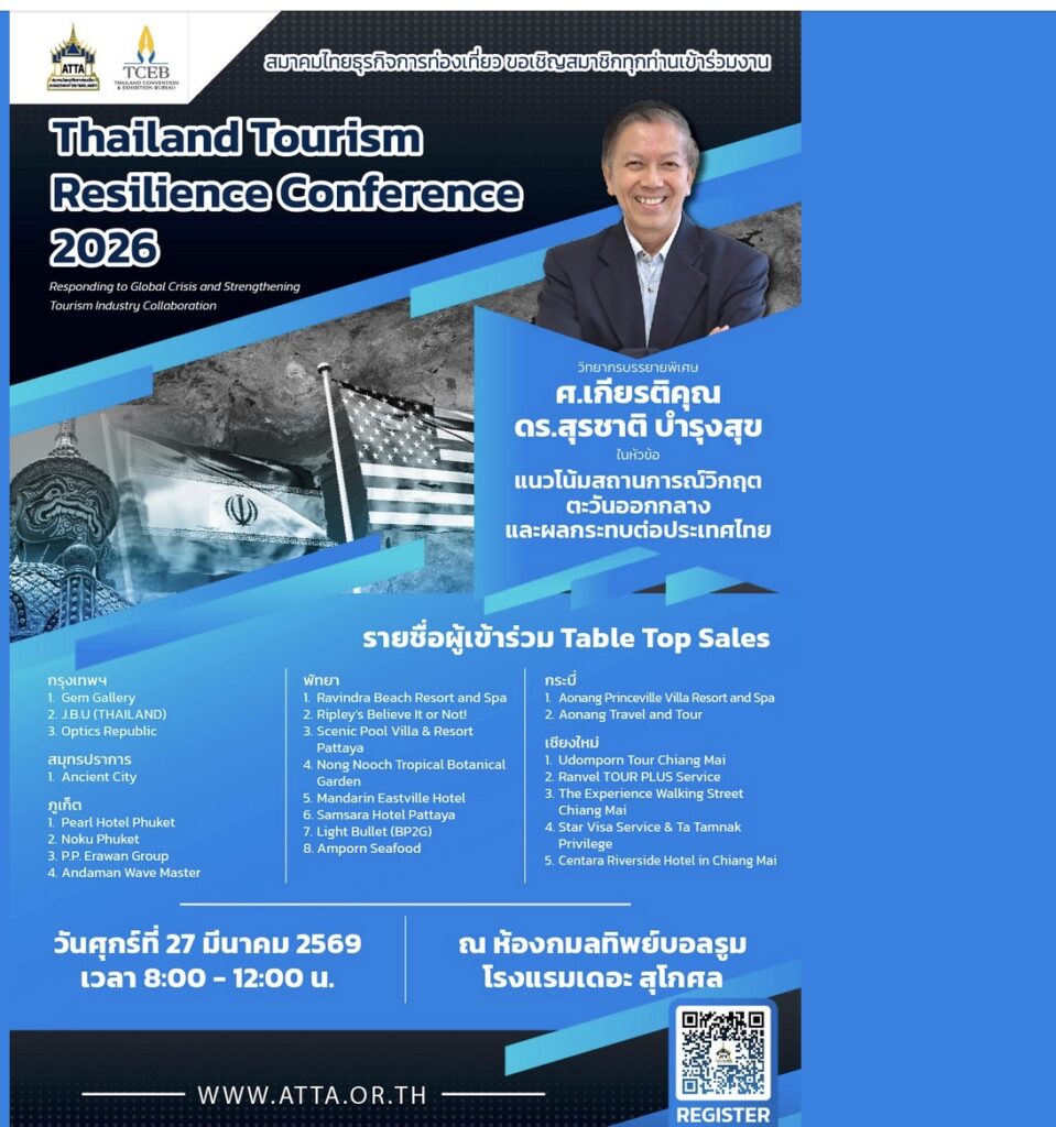 Bangkok – One of Thailand’s distinguished political scientists has warned the Thai Travel & Tourism industry to prepare for the “consequences” that will follow even after the Middle East conflict ends, including the “psychological” safety factors. The clear warning by Professor Emeritus Dr. Surachart Bamrungsuk, Faculty of Political Science at Chulalongkorn university, in a 27 March 2026 speech to the Association of Thai Travel Agents, has set the stage for a broader consideration of ALL the consequences that will hit long after the guns fall silent.